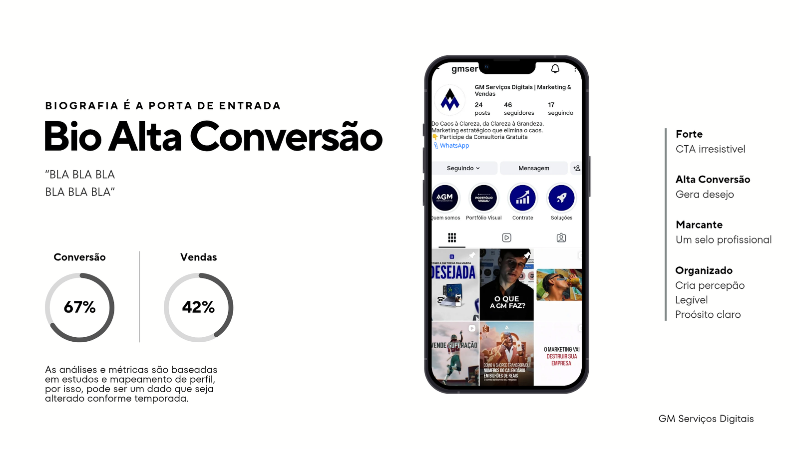 A verdade é que muitos perfis comerciais têm produtos ótimos, mas a estética, organização e percepção visual não transmitem profissionalismo e desejo nos primeiros segundos.